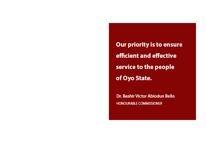 The Ministry of Health is saddled with the responsibility of policy initiation and implementation of projects targeted at improving the health and wellbeing of citizens in both rural and urban communities of Oyo State